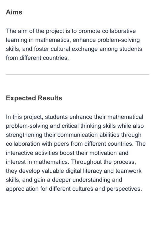 Türkiye'nin yanı sıra Ürdün, Polonya, Çekya ve Moldova Cumhuriyeti'nden toplam 12 okulun ortaklığıyla yürütülecek olan bu proje, matematiği evrensel bir dil olarak kullanarak farklı kültürleri bir araya getiriyor. Projenin temel amacı, öğrencilerimizin matematiği sadece ders kitaplarındaki formüllerden ibaret görmelerini engellemek; onu eğlenceli oyunlar, yaratıcı etkinlikler ve teknolojik araçlarla yeniden keşfetmelerini sağlamaktır.